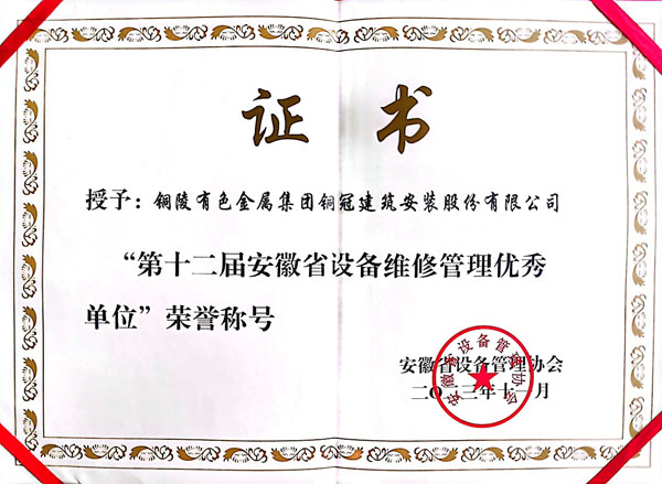 第十二届安徽省设备维修管理优秀单位