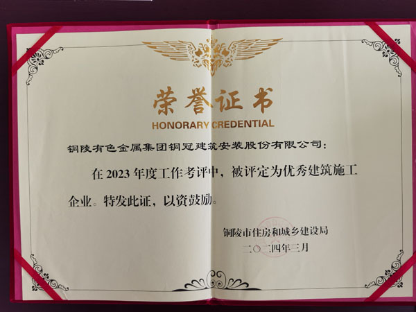 铜陵市优秀建筑施工企业(2023年度)
